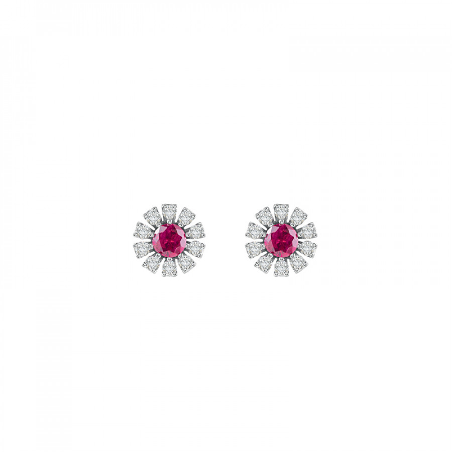 Orecchini Damiani Margherita in oro bianco, diamanti e rubini ct 0,15