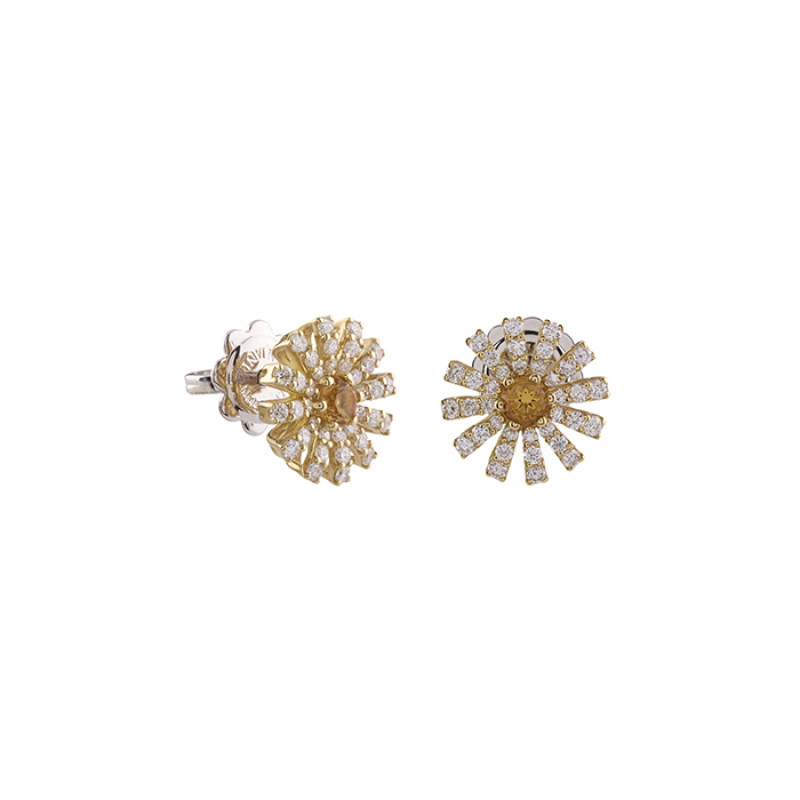 Orecchini Margherita in oro giallo, diamanti e citrino