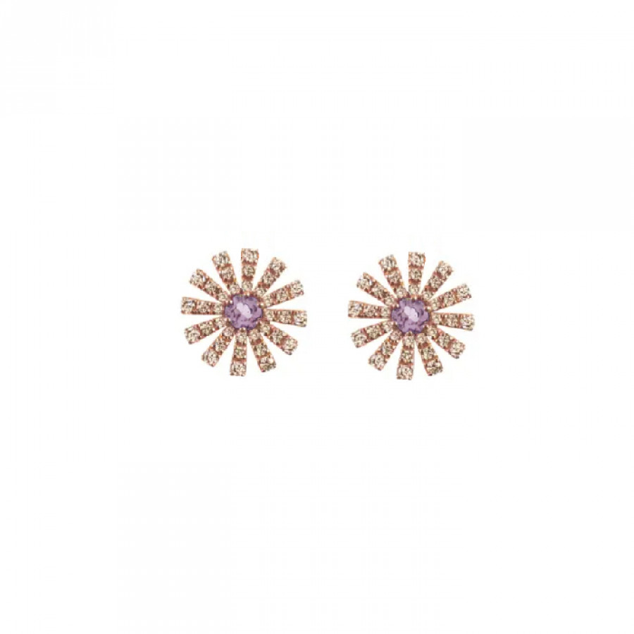 Orecchini Margherita in oro rosa, diamanti brown e tormalina