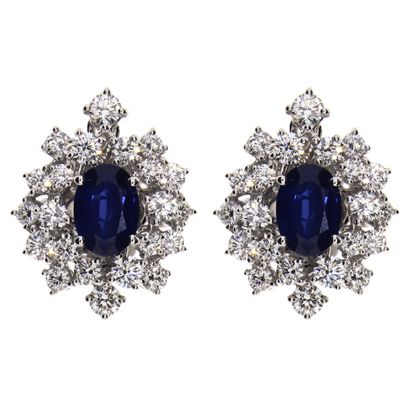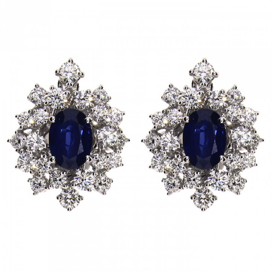 Orecchini in oro bianco con diamanti 1.9 ct. Gh e zaffiri 1.6 ct. taglio pietra ovale