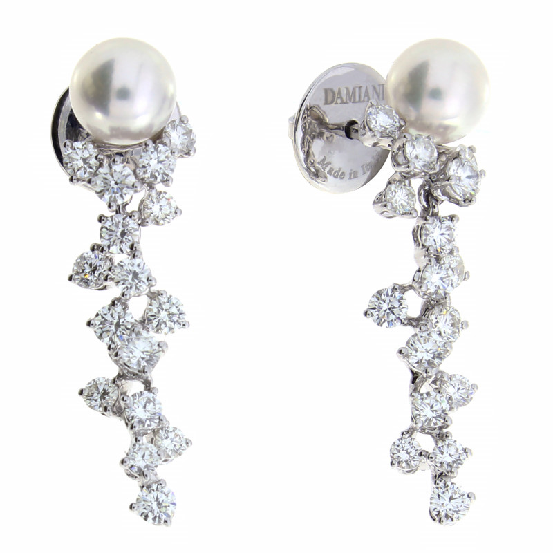 Orecchini Damiani in oro bianco con brillanti e perle appartenente alla collezione Mimosa