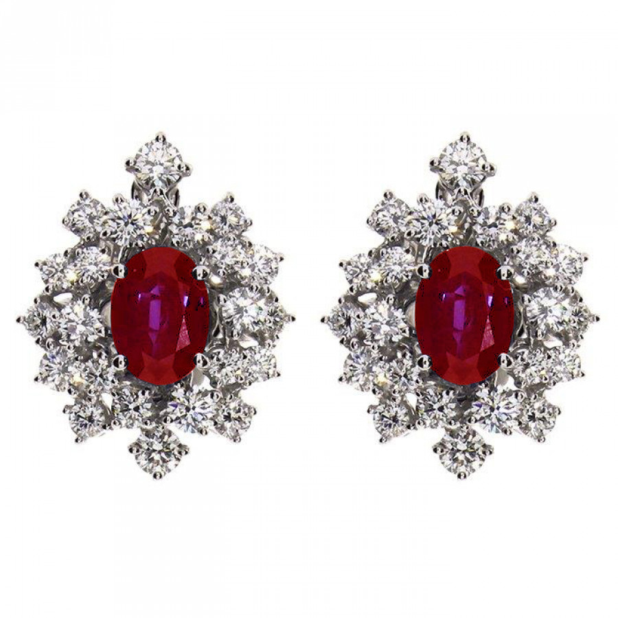 Orecchini Damiani Mimosa in oro bianco 18kt con diamanti 1,83 ct Gh e rubini 1,57 ct taglio pietra ovale