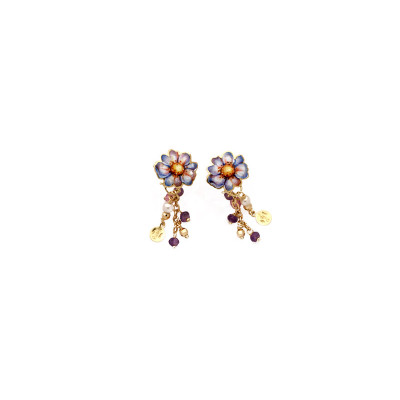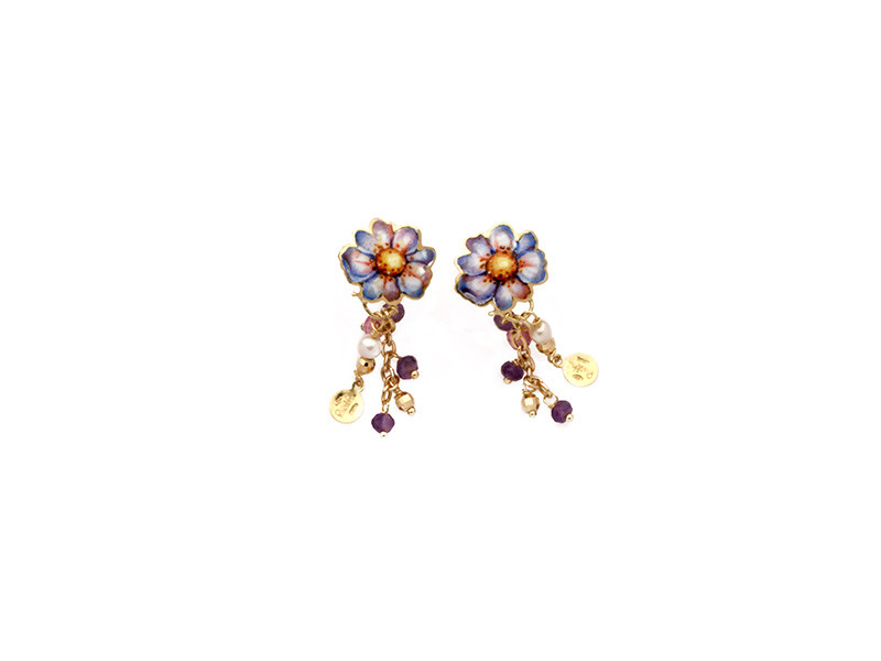Orecchini Gabriella Rivalta in oro miniato Anemone Fiorellini Grandi Viola, collezione Fiori