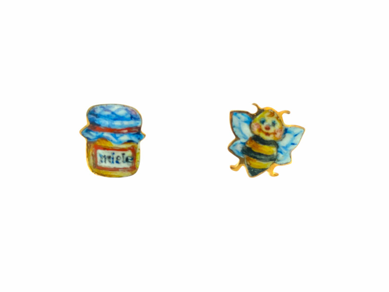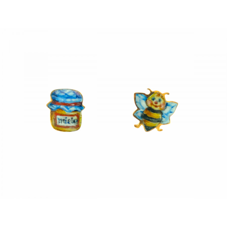 Orecchini Ape e Miele sono smaltati su lega di rame e oro 750 (18kt).