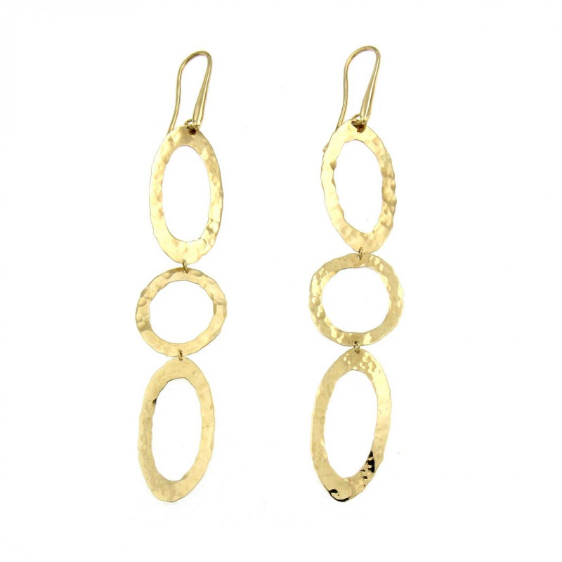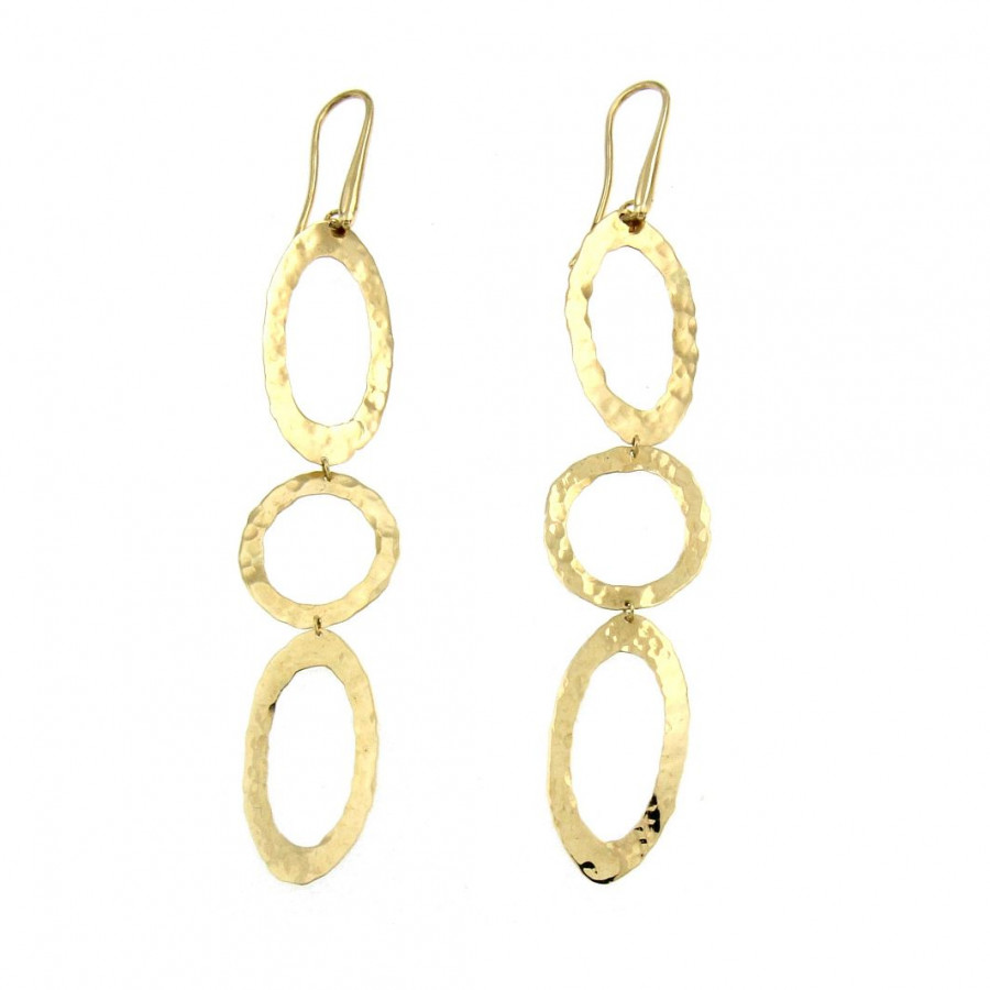 Orecchini gancio 3 cerchi martellati ORO 750‰ 9 g – oro Giallo