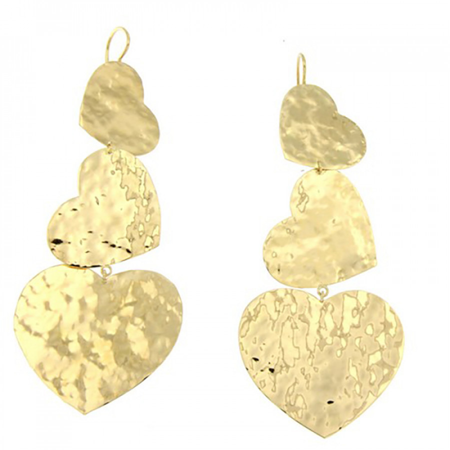 Orecchini gancio 3 cuori martellati ORO 750‰ 9 g – oro Giallo