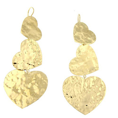 Orecchini Pendenti 3 Cuori martellati oro giallo, di Marco Gerbella della collezione Piccole Gioie