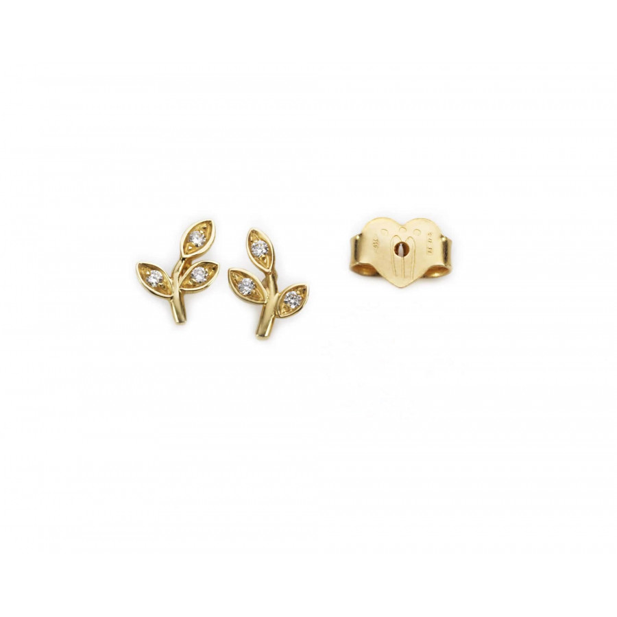 Orecchini in oro giallo 18 kt con foglie a lastra e 6 diamanti ct. 0,06.