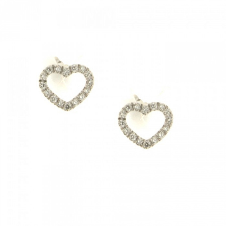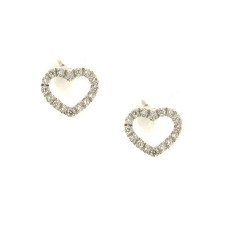 Orecchini a lobo a forma di cuore in oro bianco 1.59 gr. con diamanti 0.24 ct
