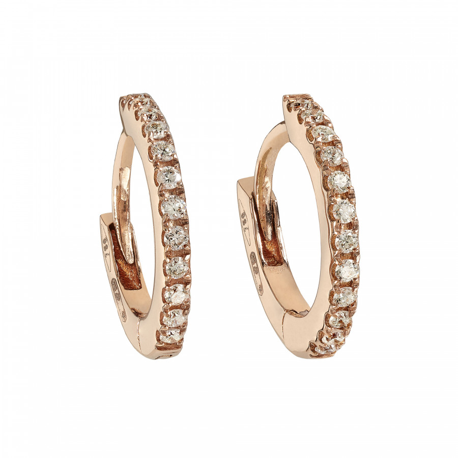 Orecchini Tondi ad anella in oro rosa 18k e diamanti ct. 0.12