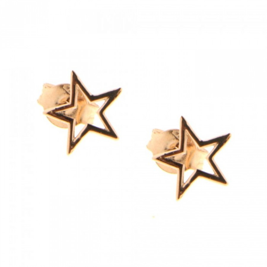 Orecchini a lobo con stella a filo in oro rosa 1.75 gr. Diametro stella 0.5 cm.