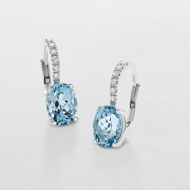 Orecchini in oro bianco con Acquamarina ct.2.55 e Diamanti FG VS ct. 0.08
