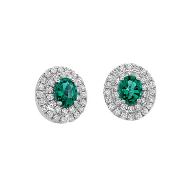 Giorgio Visconti orecchini contorno in oro bianco con smeraldi ovali centrali e doppio contorno incassato con diamanti taglio brillante
