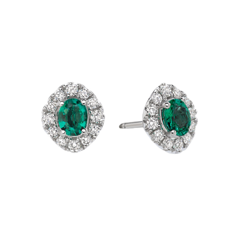 Giorgio Visconti orecchini in oro bianco con smeraldi ovali centrali e contorno incassato con diamanti taglio brillante
