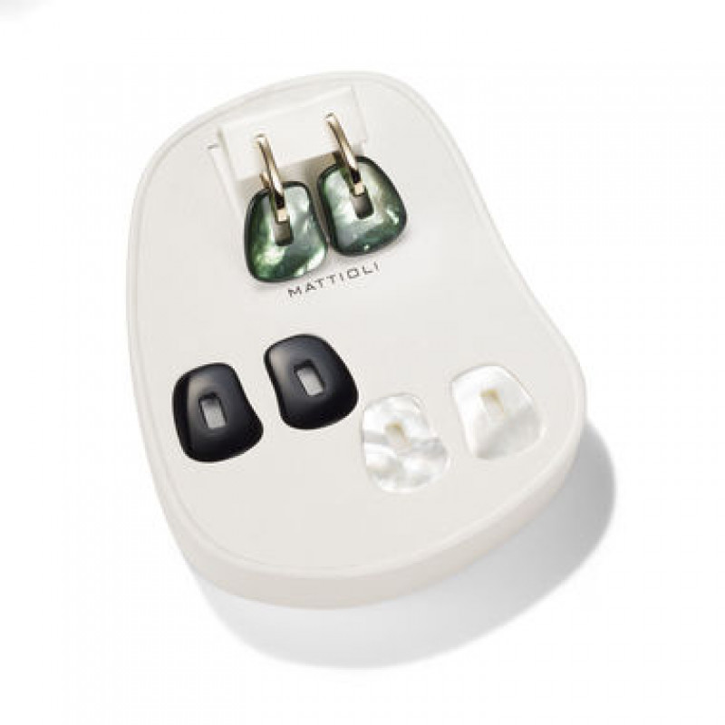 Mattioli medium earrings box in pink gold and three pairs of colored pieces, from Puzzle collection