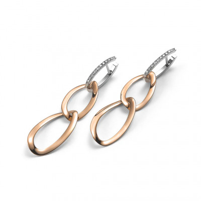 Orecchini Mattioli a cascata in oro rosa e bianco con diamanti bianchi della collezione Hiroko.