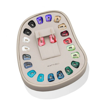 Puzzle Kit - orecchini piccoli in oro rosa, diamanti bianchi e undici paia di Puzzle colorati intercambiabili di Mattioli