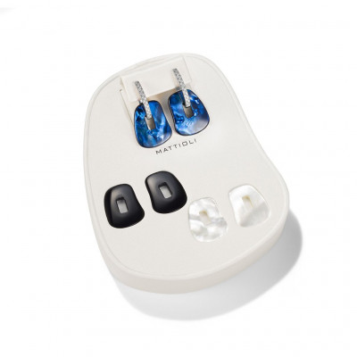 Medium earrings box in white gold and three pairs of colored Puzzles, by Mattioli from Puzzle collection