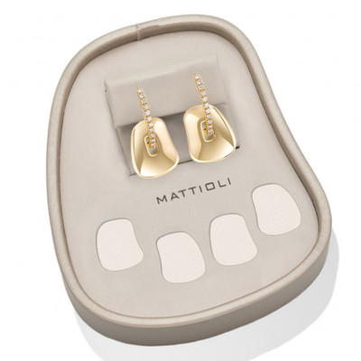Mattioli small earrings box in polished gold, white diamonds and two pairs of colored Puzzles, from Puzzle collection. DImensioni 15 x 18 mm.