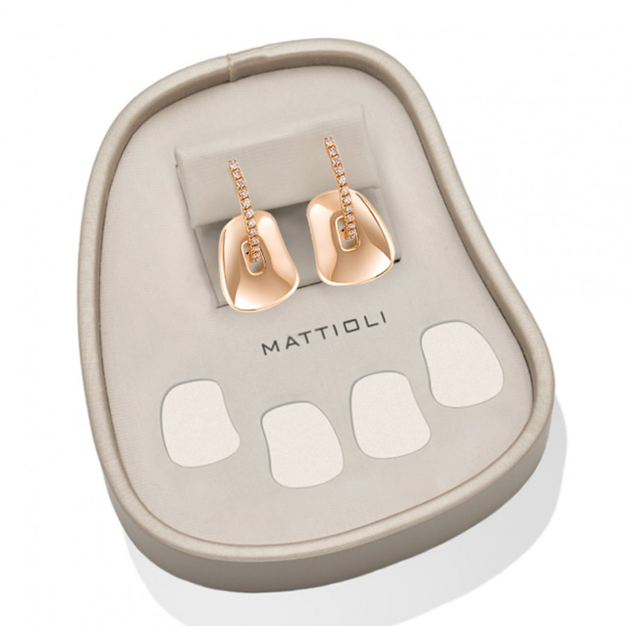 Mattioli small earrings box in polished rose gold, brown diamonds and two pairs of colored Puzzles, from Puzzle collection. DImensioni 15 x 18 mm.