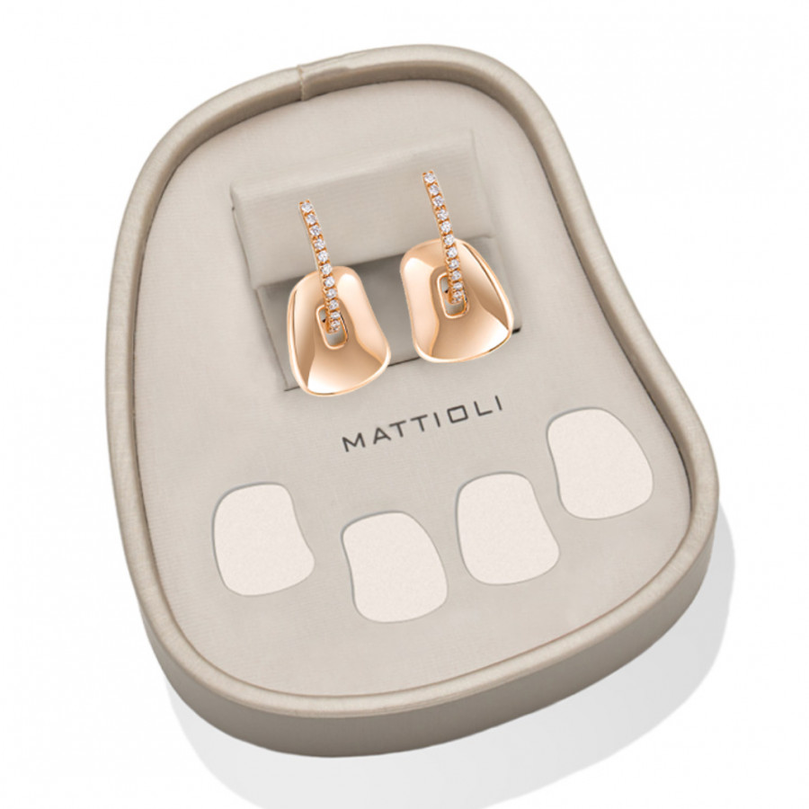 Mattioli small earrings box in polished rose gold, white diamonds and two pairs of colored Puzzles, from Puzzle collection. DImensioni 15 x 18 mm.