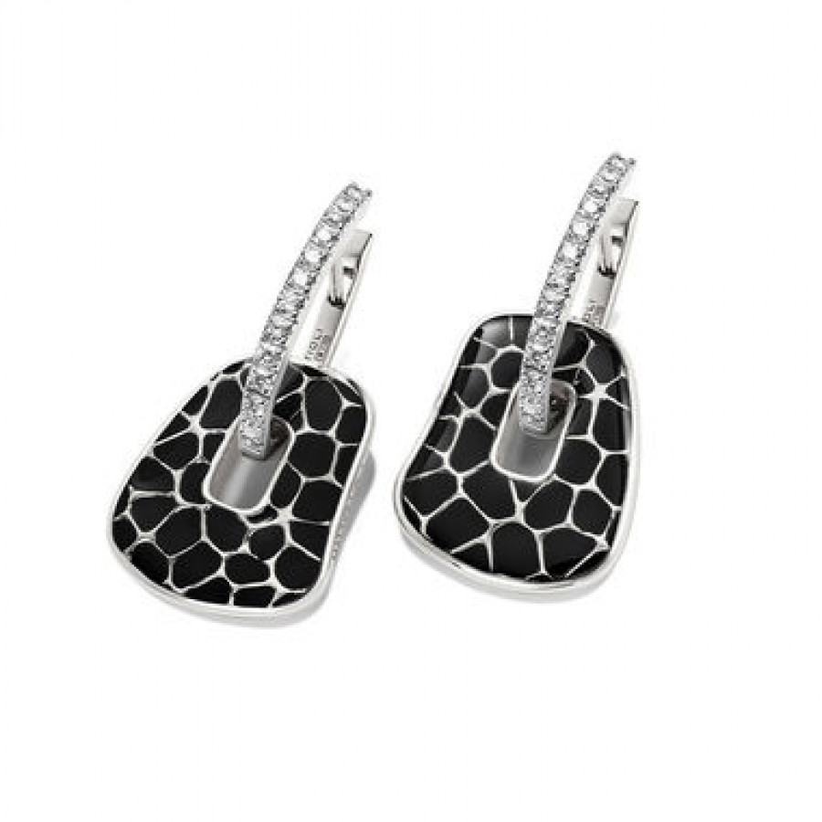 Orecchini smaltati piccoli in oro bianco con monachelle in oro bianco e diamanti bianchi e due Puzzle colorati di Mattioli della collezione Puzzle