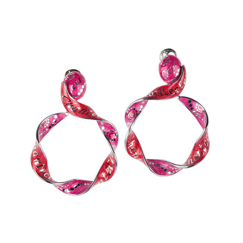 Orecchini Chantecler a cerchio con smalto rosso e rosa della collezione Et Voilà.