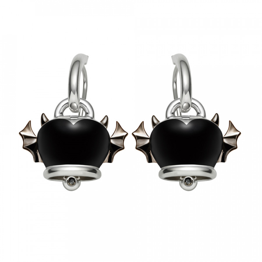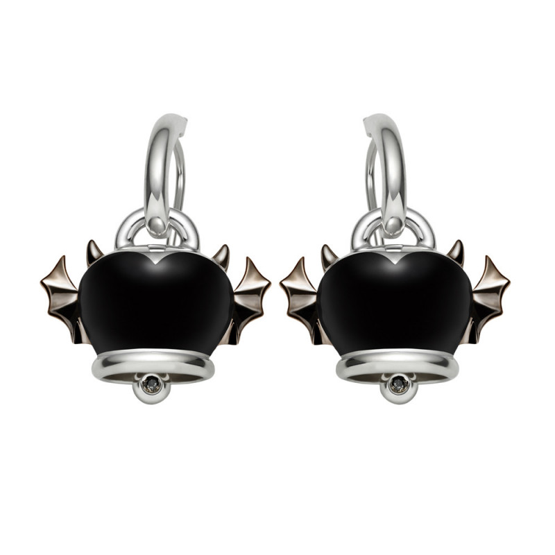 Orecchini Campanella in argento brunito, smalto nero e diamante bianco, della linea Angelo e Diavolo firmata Chantecler.