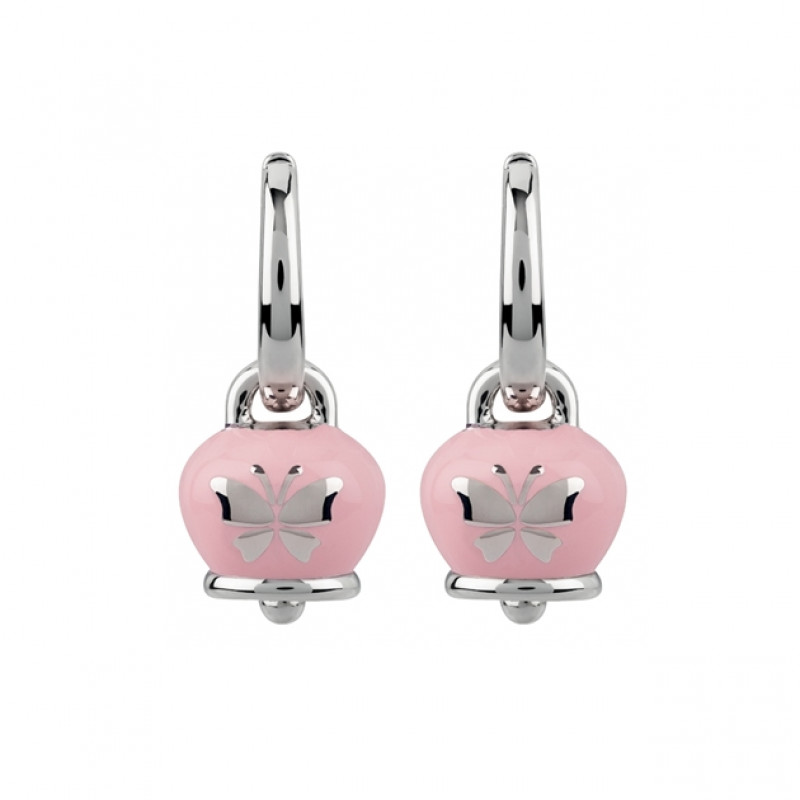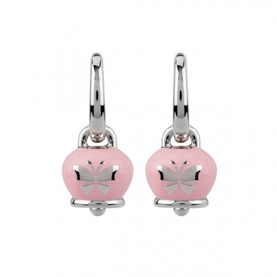Orecchini con Campanella Mini in argento e smalto rosa con Farfalla