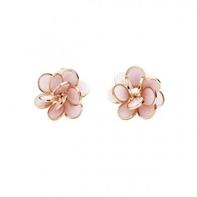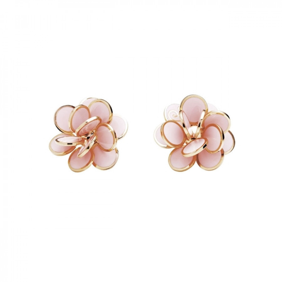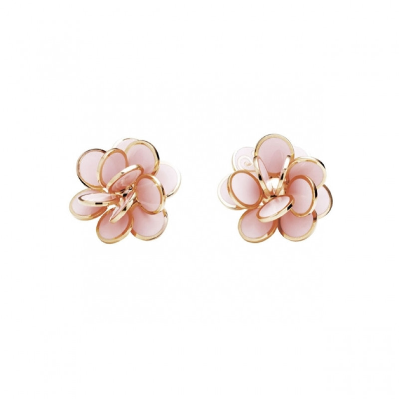 Qui troviamo gli orecchini a fiore appartenenti alla collezione Chantecler Paillettes in oro rosa 18kt e smalto rosa cipria.