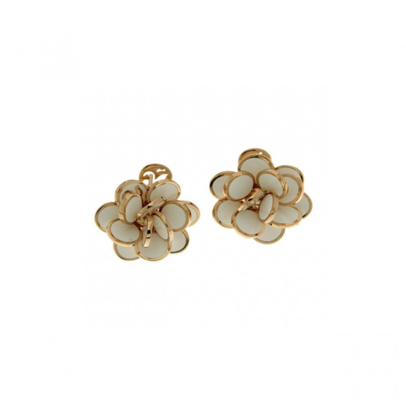 Qui troviamo gli orecchini a lobo appartenenti alla collezione Chantecler Paillettes in oro rosa 18kt e smalto bianco. Formato mini.