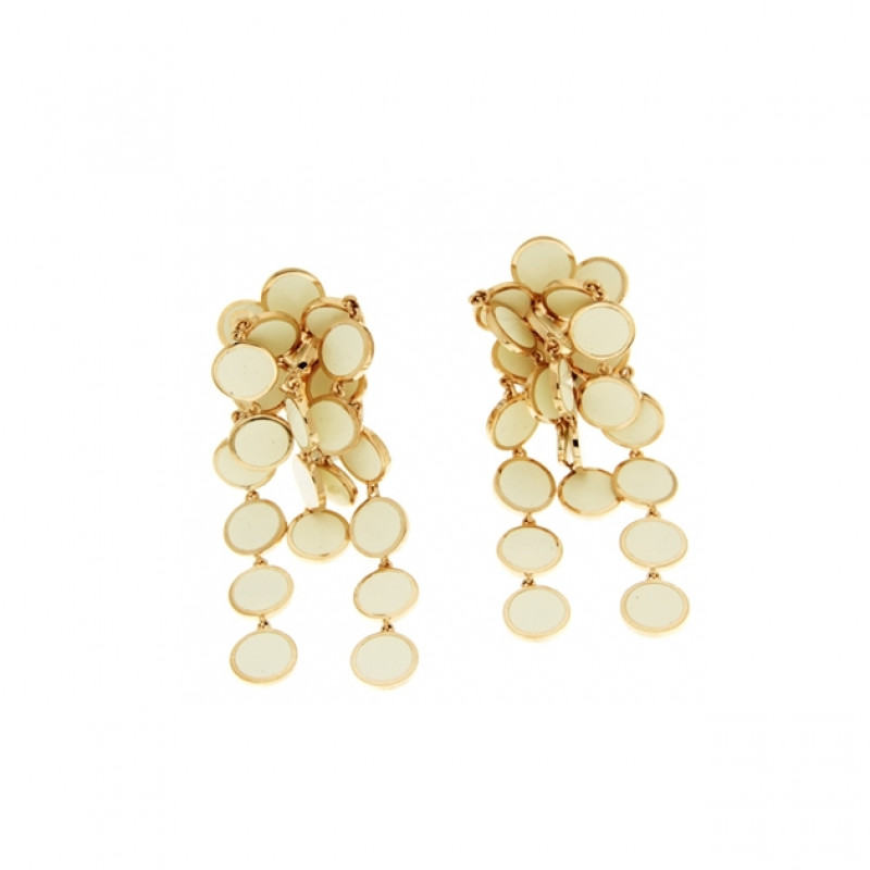 Qui troviamo gli orecchini a cascata appartenenti alla collezione Chantecler Paillettes in oro rosa 18kt e smalto bianco. Formato mini.