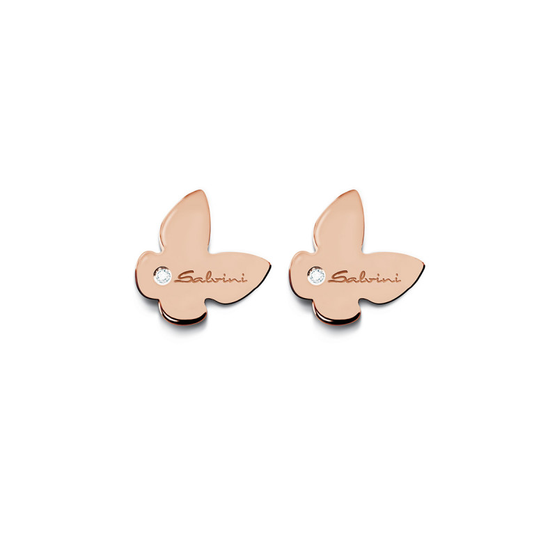 Orecchini in oro rosa con diamanti, della collezione Minimal Pop di Salvini.