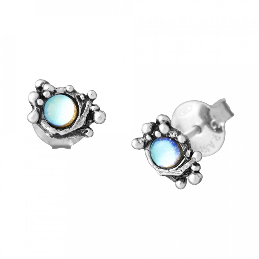Questi graziosi orecchini uniscono l'eleganza dell'argento brunito con il fascino della pietra, un quarzo dal colore azzurro opalescente. Un piccolo grande gioiello, frutto della maestria dei nostri artigiani, da indossare ogni giorno.