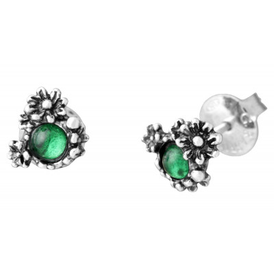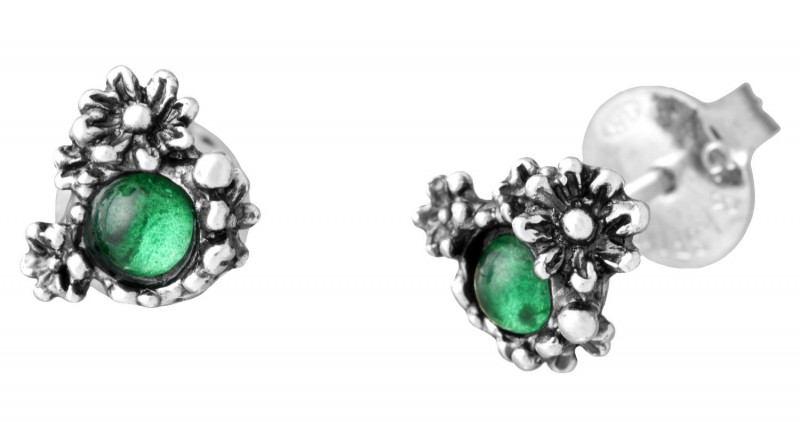 Minuscole margherite in argento brunito incastonano il verde dell'agata, per un piccolo grande gioiello da indossare ogni giorno. Completamente realizzata a mano, questa creazione unisce eleganza e semplicità.