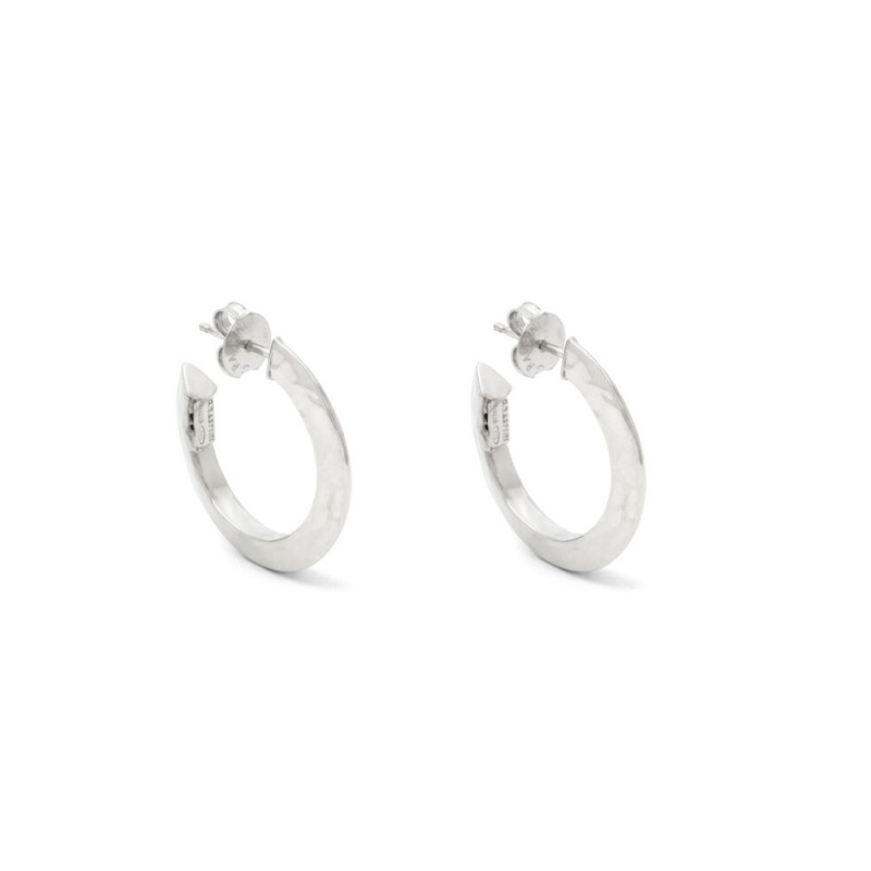 Giovanni Raspini esprime con classe l'abilità di interpretare il design contemporaneo attraverso i gioielli. Negli orecchini a cerchio Blade, la forma perfetta e la texture martellata regalano una lucentezza straordinaria. Fatti in azienda con lastra d'argento martellata a mano.