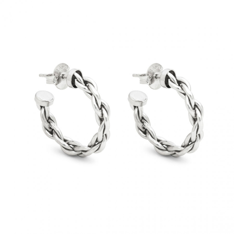 Giovanni Raspini propone questi piccoli ed eleganti orecchini a cerchio in argento fuso a cera persa. La forma di questi orecchini si ispira ad una catena classica, ma con effetto rigido. Fatti a mano in azienda. Per una donna che ama la bellezza dell'unicità.