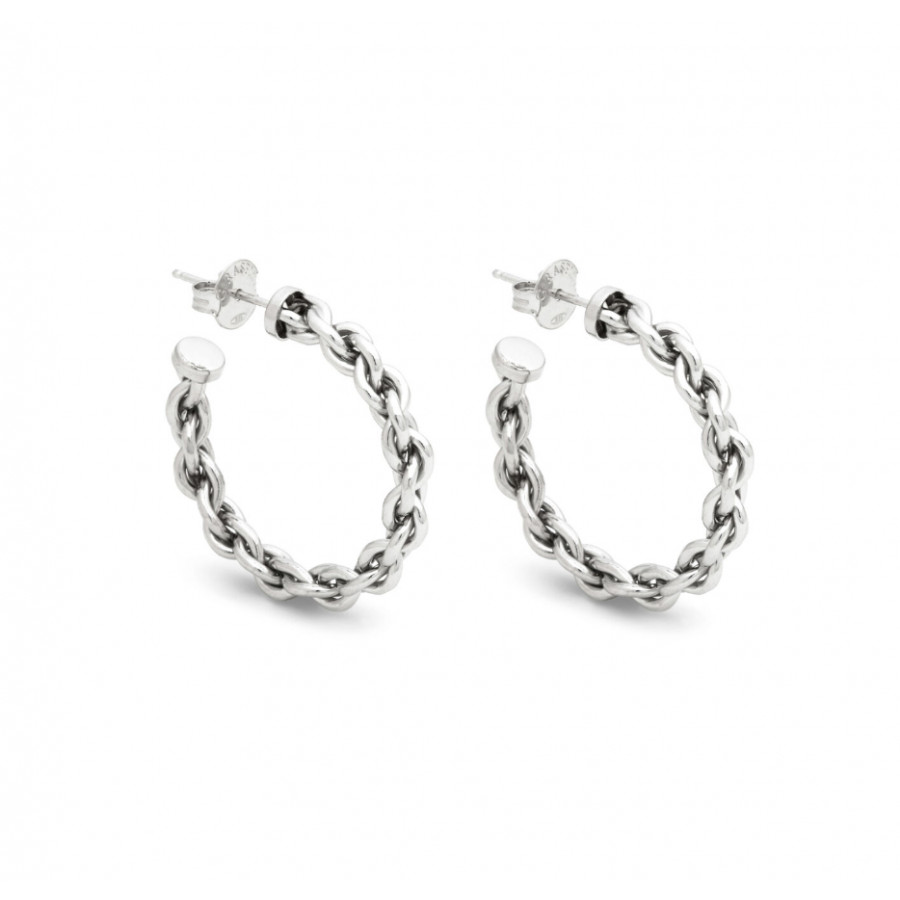Per una donna che ama la bellezza dell'unicità, Giovanni Raspini propone questi eleganti orecchini a cerchio in argento fuso a cera persa. La forma di questi orecchini si ispira ad una catena classica, ma con effetto rigido. Fatti a mano in azienda. Per una donna che ama la bellezza della semplicità.