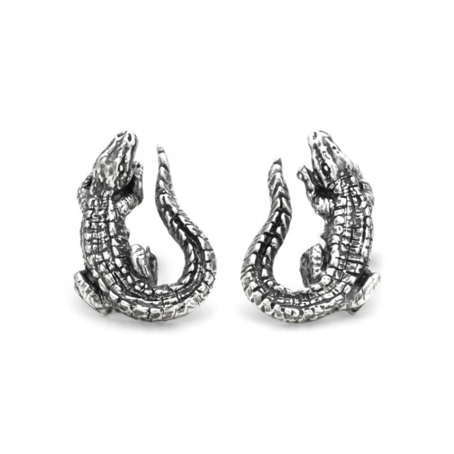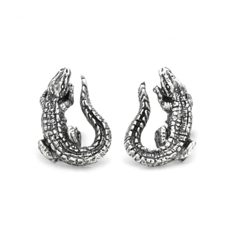 Questi orecchini sono delle vere e proprie sculture in miniatura, realizzate artigianalmente in argento brunito, rappresentanti un coccodrillo che si adagia delicatamente sull'orecchio. Il design iconico animalier di Giovanni Raspini si fa gioiello.