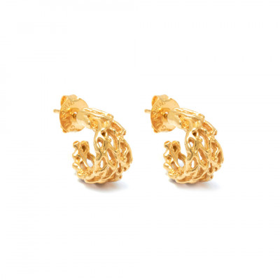 Piccoli capolavori in argento fuso a cera persa, dalla calda luce dorata. Questi orecchini sviluppano l'ispirazione marina del brand, prendendo la forma di piccoli ed eleganti cerchi.