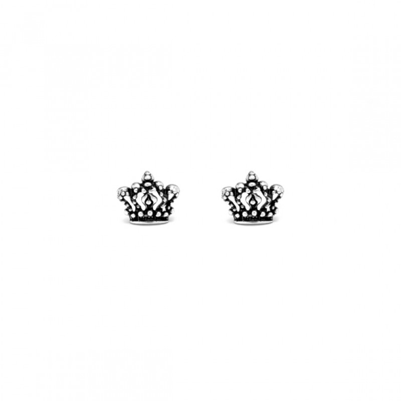 Questi deliziosi orecchini si caratterizzano per i chiaroscuri dell'argento brunito. Realizzati con l'antica tecnica della fusione a cera persa, riprendono in chiave delicatamente pop il tema classico delle corone. Completamente fatti a mano, in house, espressione della capacità artigiana del marchio Giovanni Raspini.