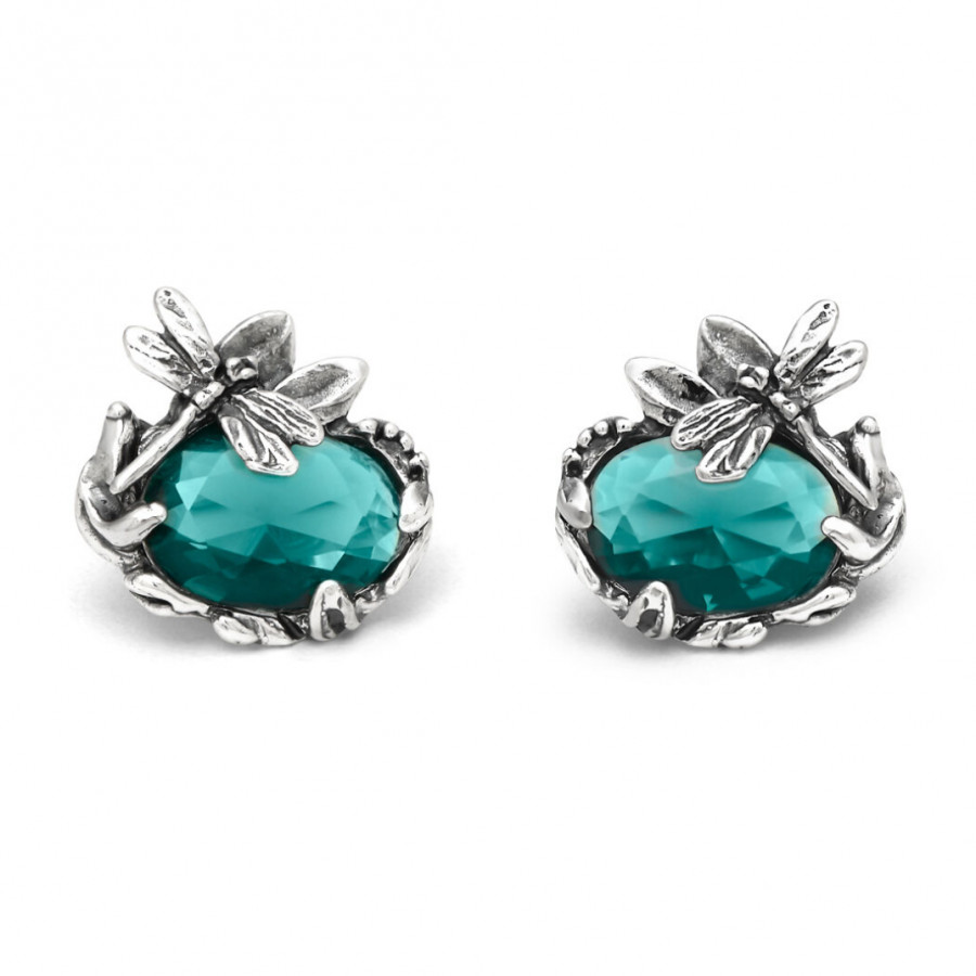 Delicate libellule in argento incastonano le pietre di questi meravigliosi orecchini. Tradizione e bellezza che incontrano l'eleganza del quarzo color smeraldo.
