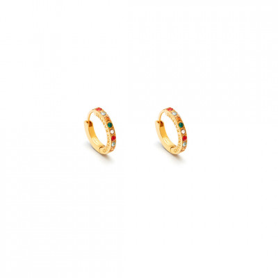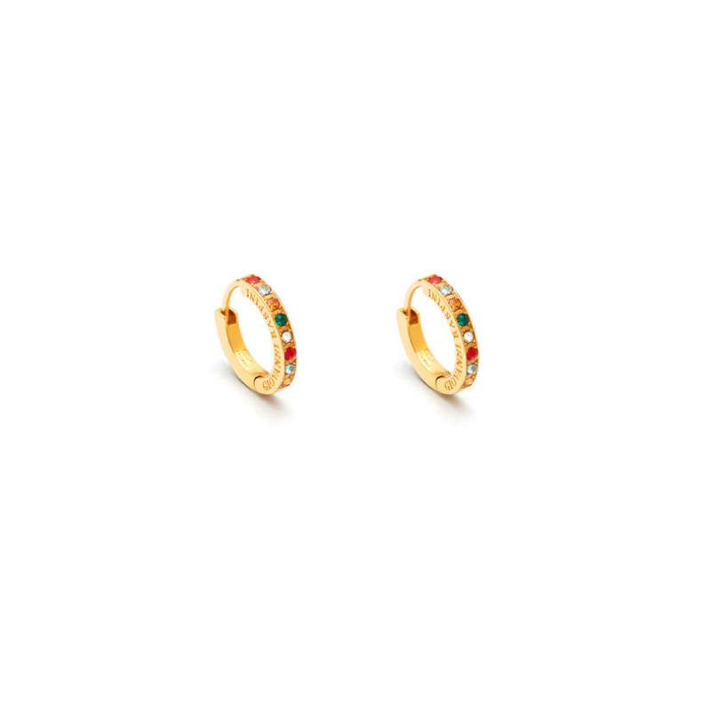 Orecchini Giovanni Raspini Huggie Crystal piccoli in argento 925 dorati e zirconi colorati della collezione Rock.