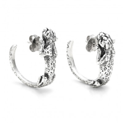 Eleganti sculture in miniatura, questi orecchini in argento brunito mostrano un leopardo che col corpo crea un elegante cerchio, mentre la testa dell'animale poggia delicatamente sull'orecchio. Un gioiello che unisce la forza e la bellezza delle collezioni Animalier, creando un accessorio sofisticato e unico. Realizzati a mano in azienda.