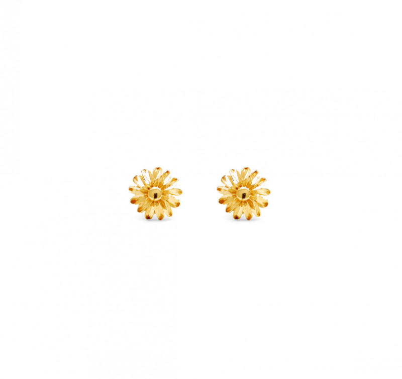 Orecchini in argento dorato piccoli e minimali in cui il decoro naturalistico è l'unico protagonista. La margherita d'argento in fusione, diamantata a mano petalo per petalo, dà vita a questi elegantissimi orecchini. Bellezza e luce assoluta da indossare.