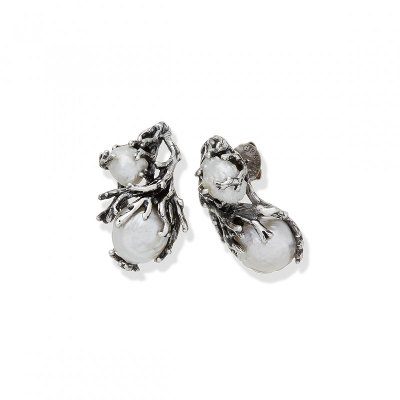 Collezione Mari del Sud - L'argento fluisce in forme coralline e si sposa con le perle naturali d'acqua dolce dai riflessi bianco opalescenti.