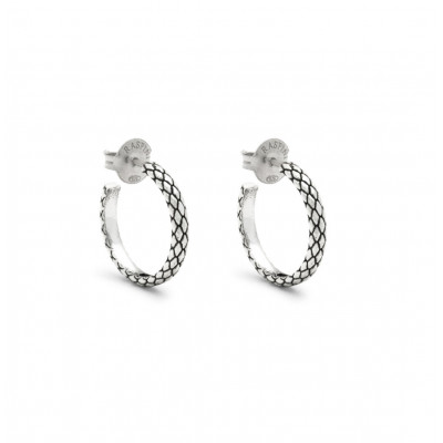 Tutta l'eleganza dell'argento brunito. Questi orecchini a cerchio con decoro Texture coniugano minimalismo contemporaneo e artigianalità di alta fascia. Realizzati mediante l'antica tecnica della fusione a cera persa, si adattano alle molteplici sfumature della vita quotidiana. Fatti a mano in azienda.
