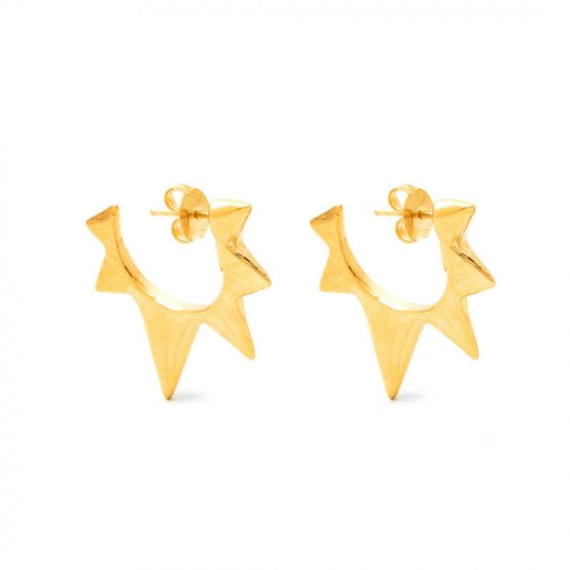 Gli orecchini Rock Star in argento dorato propongono una superficie spatolata a mano e bordi in forma di cuspidi. Modernissimi e particolari, vengono realizzati interamente a mano con l'antica tecnica della fusione a cera persa.