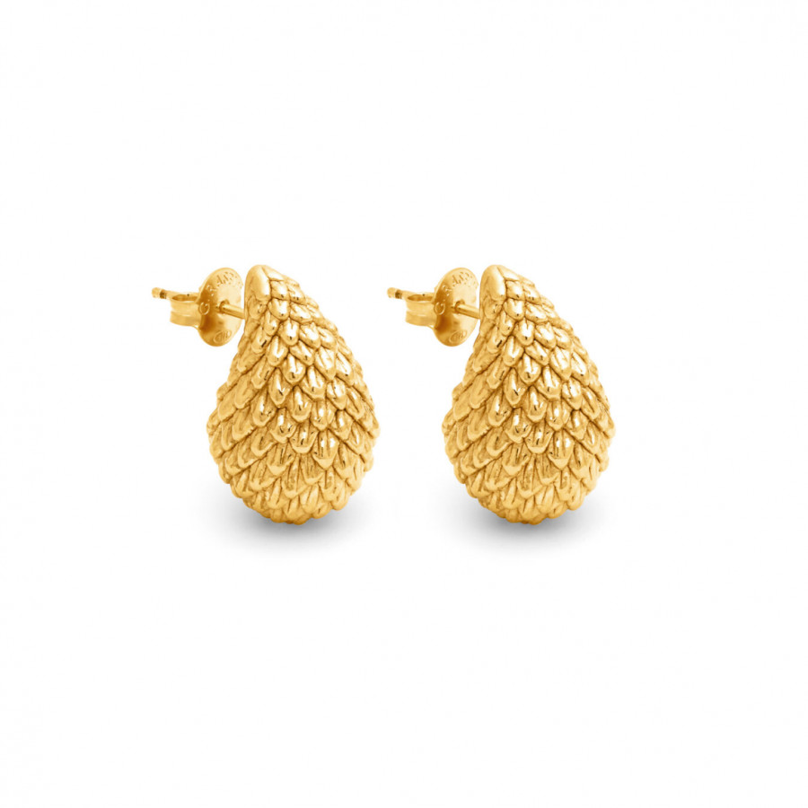Con questi orecchini in argento dorato, di grande eleganza e leggerezza, Giovanni Raspini esplora il tema della goccia, decorata con la texture di serpente. Eleganti e versatili, sono realizzati completamente a mano in azienda.