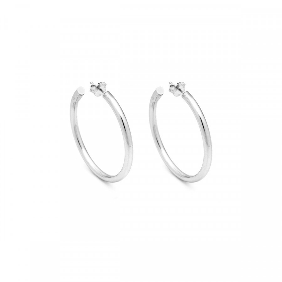 Essenzialità del design e luminosità assoluta dell'argento, declinato in linee purissime, per questi orecchini a cerchio. Realizzati in tubo d'argento, completamente a mano, in azienda. Less is more!